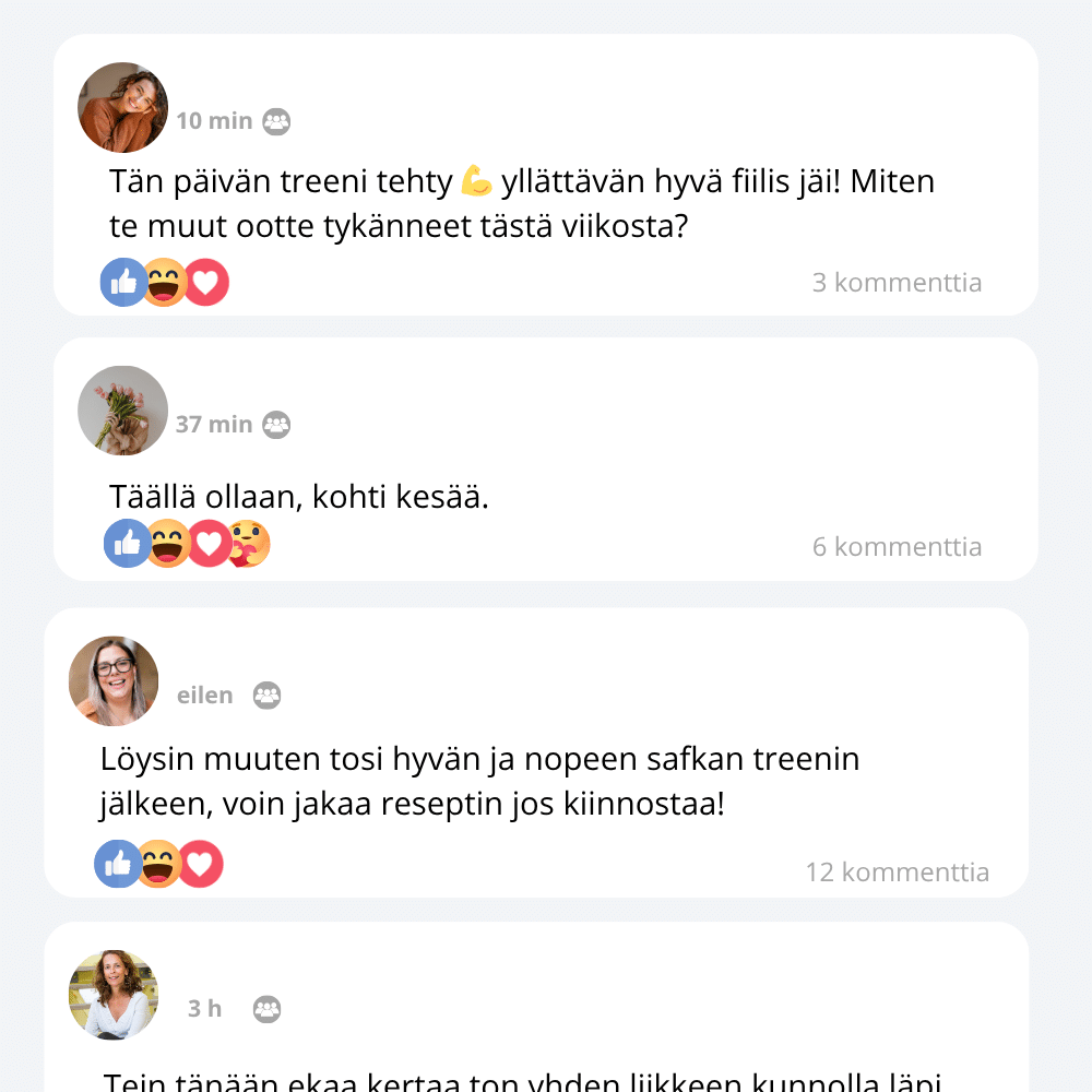 Voimme kannustaa toisiamme, jakaa reseptivinkkejä ja treenifiilistelyjä.