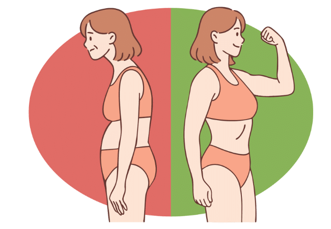 ➕Lihaskuntoharjoittelu ehkäisee lihasmassan vähenemistä ja tehostaa rasvan palamista, etenkin vyötärön alueelta.