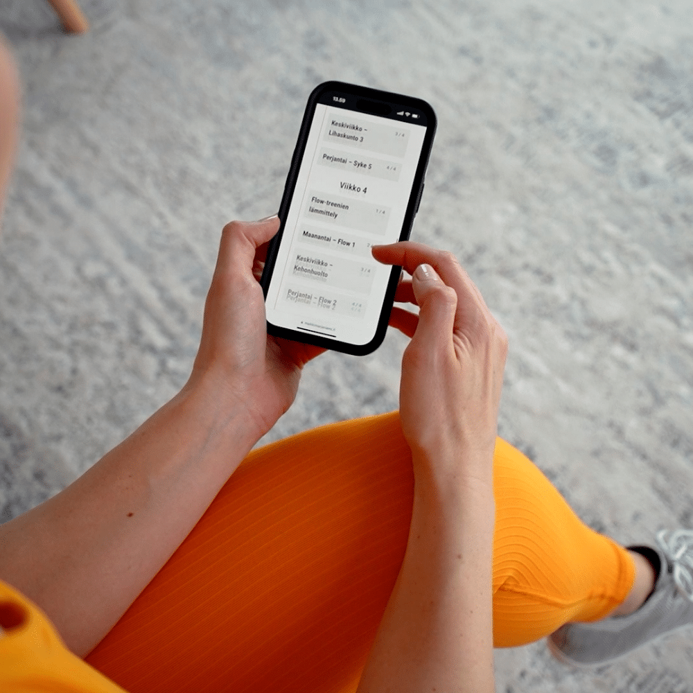 ”Tykkään näissä treeneissä siitä, että on hyvä, rauhallinen ohjeistus, vaikka tehtäiskin välillä kovaa tahtia. Ohjeita on helppo seurata.