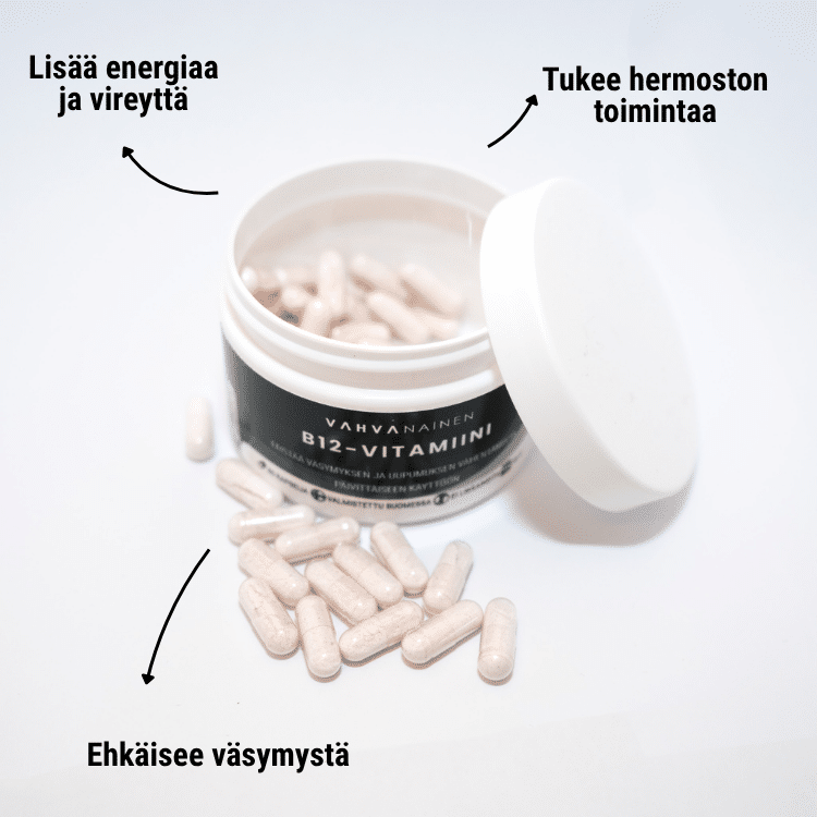 B12-vitamiini on keskeinen tekijä kehon energiantuotannossa ja hermoston toiminnassa. Se auttaa jaksamaan arjessa ja tukee palautumista aktiivisen elämän rytmissä. se on erityisen hyödyllinen lisä stressaaville tai fyysisesti vaativille kausille.