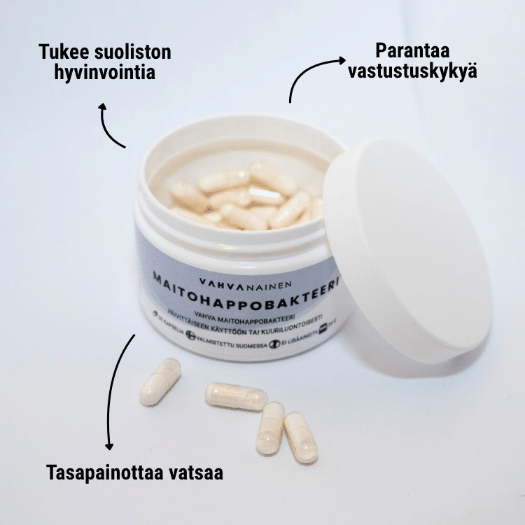 Maitohappobakteerivalmiste – Ravintolisä / Kosttillskott