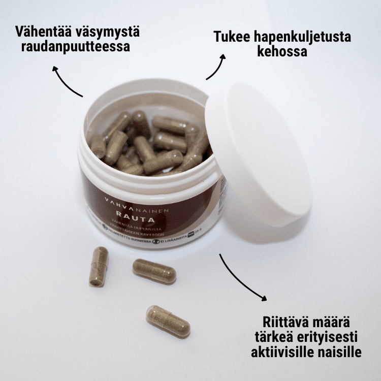 Huomio! Rautaa ei tule käyttää säännöllisesti ilman tarvetta. Jos rautapitoisuudet ovat verikokeissa normaalit, lisäraudasta ei ole hyötyä – liiallinen raudan saanti voi jopa olla haitallista.